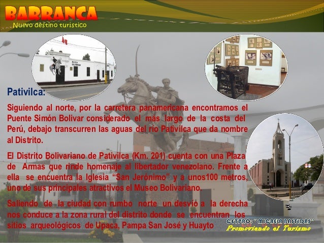 Nuestro proposito es ser un Promotor de Turismo de nuestra querida Tierra como es Barranca , estamos ubicados a 180 Km. al norte de la Ciudad de Lima capital del Pesú !!!